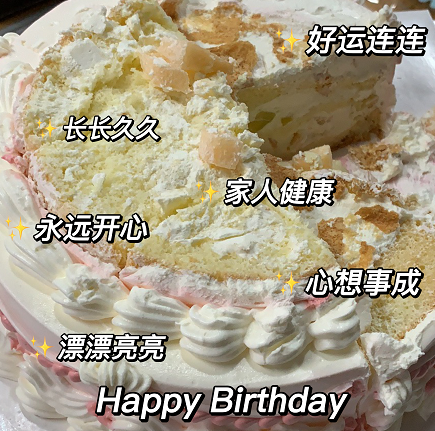 吃蛋糕啦~~快一起来品尝这块好运糕叭