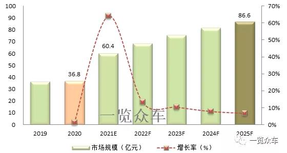 相较传统汽车,新能源汽车在电驱动单元、电气设备的数量上都有较大的增加,内部动力电流及信息电流错综复杂,特别是高电流、高电压的电驱动系统对连接器的可靠性、体积和电气性能提出更高的要求,这意味着新能源汽车对连接器产品需求量及质量要求都将大幅提升。 一览众咨询数据显示:2020年中国新能源汽车高压连接器市场规模36.8亿元。预计到2025年国内电动汽车高压连接器市场规模将达到86.6亿元。